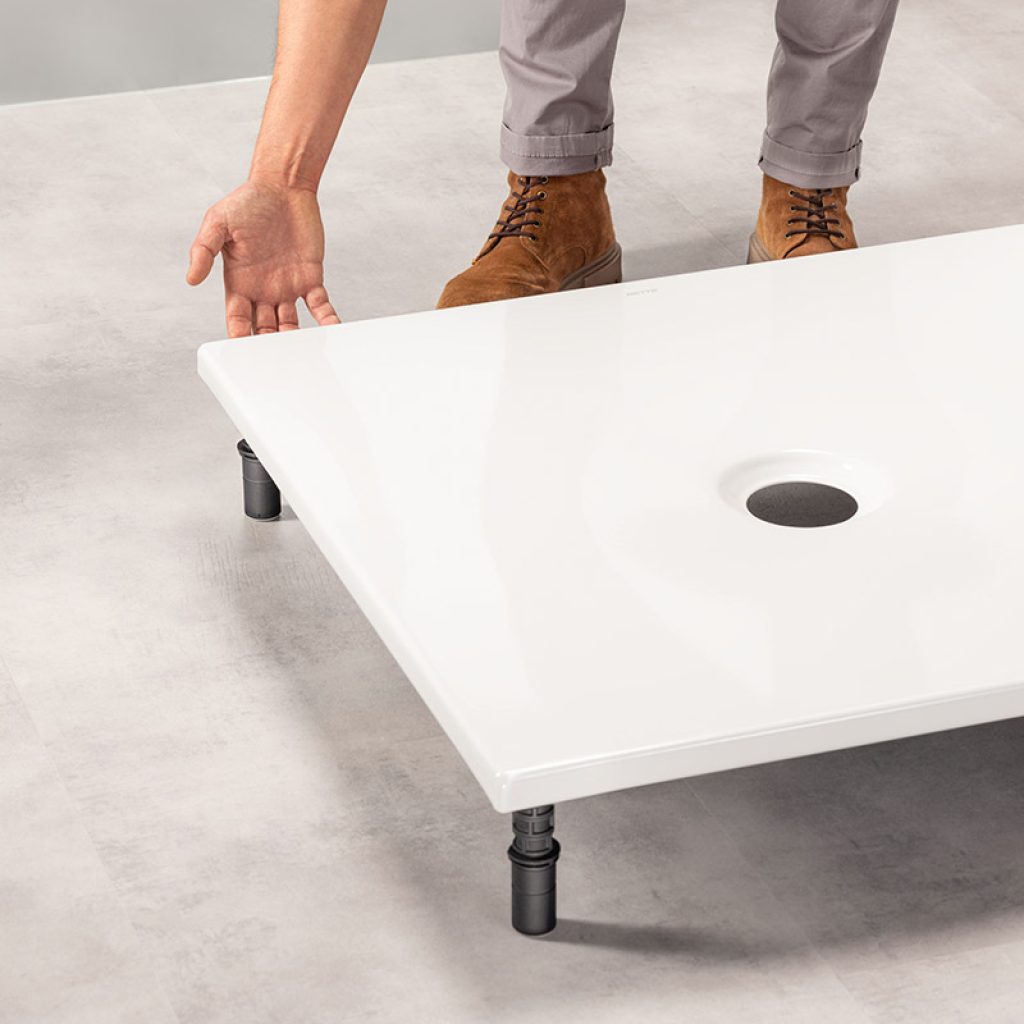 BetteLevel ist ein Montagefuß mit dem deine Dusche beispiellos, schnell und einfach ausgerichtet werden kann.