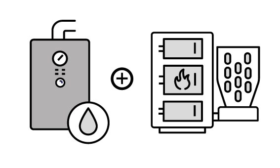 Eine weitere Variante ist die Kombination mit einer Biomasseheizung, d.h. einer Pellet- oder Hackschnitzelheizung, einem Pelletofen oder einem Scheitholzvergaserkessel.