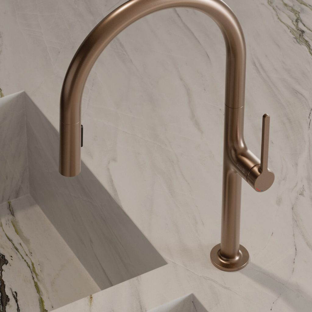 Zudem sind die Armaturen je nach Serie in bis zu sechs stilvollen Farbtönen erhältlich: Chrom, Mattschwarz, Brushed Gold, Brushed Bronze, Brushed Gunmetal und Brushed Nickel. Diese Farbvielfalt ermöglicht eine perfekte Anpassung an unterschiedlichste Küchendesigns.